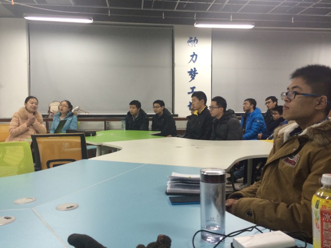 2014年12月13日晚,能源与动力工程学院140412,140414,140417班与1104的两位学姐进行了两个多小时的新老生交流会。与学弟学妹进行沟通交流的两位学姐分别是李金玮,施祎。两位学姐的倾情传授使学弟学妹们受益颇多。