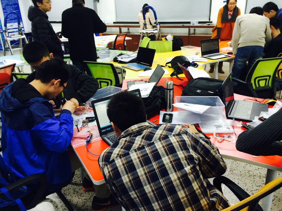 “CDIO”代表构思(Conceive)、设计(Design)、实现(Implement)和运作(Operate) ,再现了产品从研发到产品运行的生命周期,是近年来国际工程教育改革的最新成果。课堂伊始,助教楼昊同学首先用风趣幽默的语言为大家介绍了本次课程的任务。随后,在各位导生的集体协助下,大家初步认识了Arduino单片机开源系统平台的软硬件设施,并开始在程序编辑软件Arduino IDE上尝试程序代码的编写。明确分组之后,两三位同组的同学密切配合,