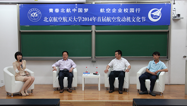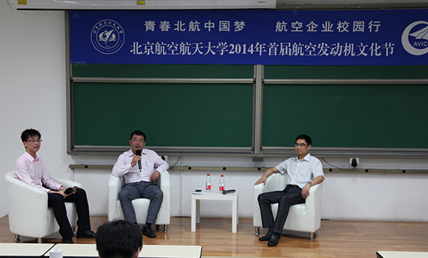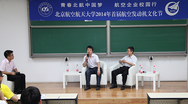 2014年6月6日下午3时,由北京航空航天大学和中国航空工业集团公司联合主办的“青春北航中国梦·航空企业校园行”首届航空发动机文化节之航空发动机企业高管访谈在沙河校区3号教学楼顺利举行。