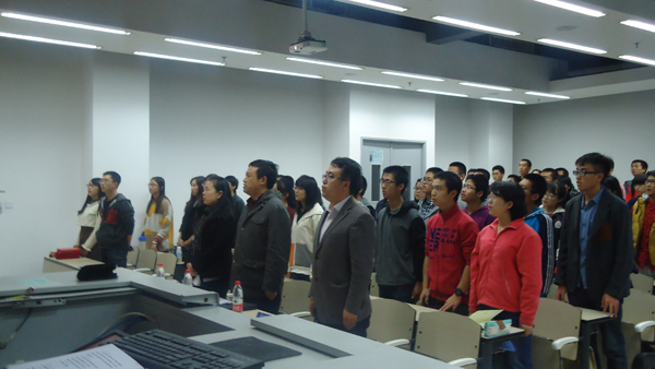 2014年10月22日晚18:30,能源与动力工程学院与新媒体艺术与设计学院共建学生党校在沙河校区教3-104举行了开学典礼。能源与动力工程学院分党委书记王强教授、能源与动力工程学院分党委副书记李建伟老师、新媒体艺术与设计学院分团委书记董萍萍老师、第四期共建党校优秀学员代表与第五期共建党校干部、全体学员共同参加了开学典礼。