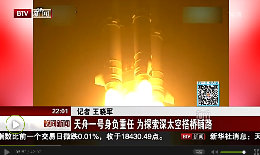 编者按:2017年4月20日19时41分,天舟一号货运飞船经由长征七号遥二运载火箭托举,成功进入太空。约596秒后,飞船与火箭分离,进入预定轨道,标志着此次发射取得圆满成功。北京电视台2017年4月20日的《晚间新闻》报道了天舟一号的发射情况,其中以《天舟一号身负重任 为探索深太空搭桥铺路》为题深度报道了北航人在天舟一号的研制与发射过重所做的贡献,并采访了我校能源与动力工程学院教授闫晓军和宇航学院博士苗建军。