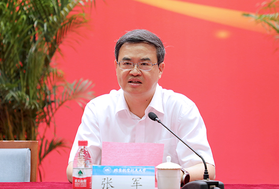 校长徐惠彬院士发表了热情洋溢的讲话。他代表北航全体师生员工对2017级研究生新生的到来表示热烈的欢迎和衷心的祝贺。徐校长从开场视频《卓越·直上云霄》谈起,回顾了近年来北航服务国家重大需求和瞄准国际学术前沿的创新性研究成果,重点介绍了北航研究生作为学校学术研究的主力军所做出的突出贡献。针对即将开始的研究生学习生涯,徐校长与同学们分享交流了关于“卓越”的三个境界:一是要追求卓越的学术信仰;二是要追求卓越的德性品格;三是要追求卓越的家国情怀。最后徐校长鼓励同学们以探索的勇气、坚韧的执着、明辨的思维、崇高的品格,去不断追求卓越的境界,收获自己的精彩人生。