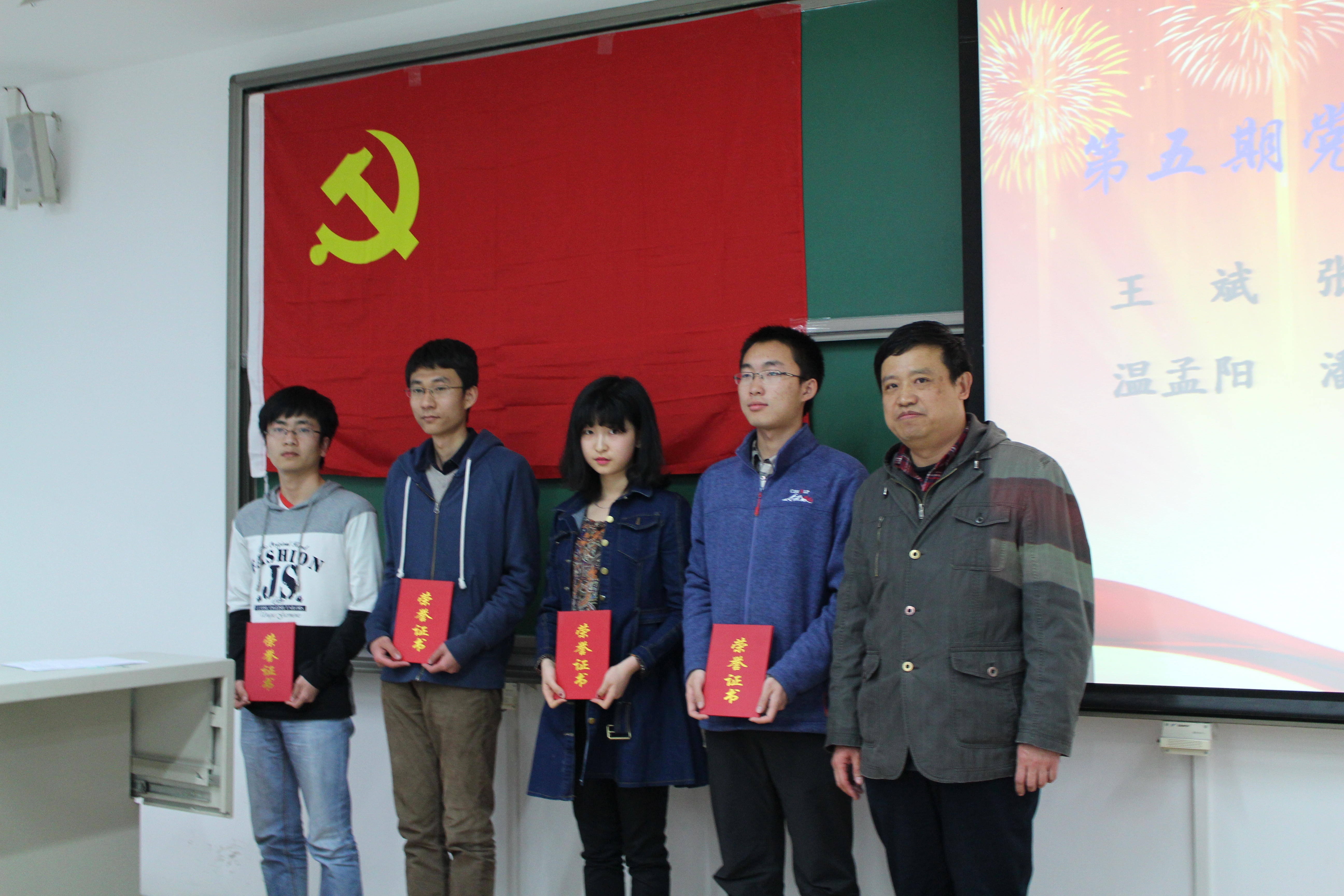 典礼开始后,全体起立唱国际歌,党校干部和学生在国际歌悠扬的歌声中,再一次感受到党的温暖与力量。紧接着,王强书记致辞并为第五期共建党校优秀学员颁奖。致辞中,王强书记解释了4、26、27三个系决定联合培养积极分子的原因。他说,希望能动的学生将来在自己的设计中增添一些艺术的因素,同时,随着环境问题逐渐进入人们的视野,发动机发展中的污染问题亟需27系的协助解决。26系和27系则希望在与4系的合作中,培养同学们的航空情怀。