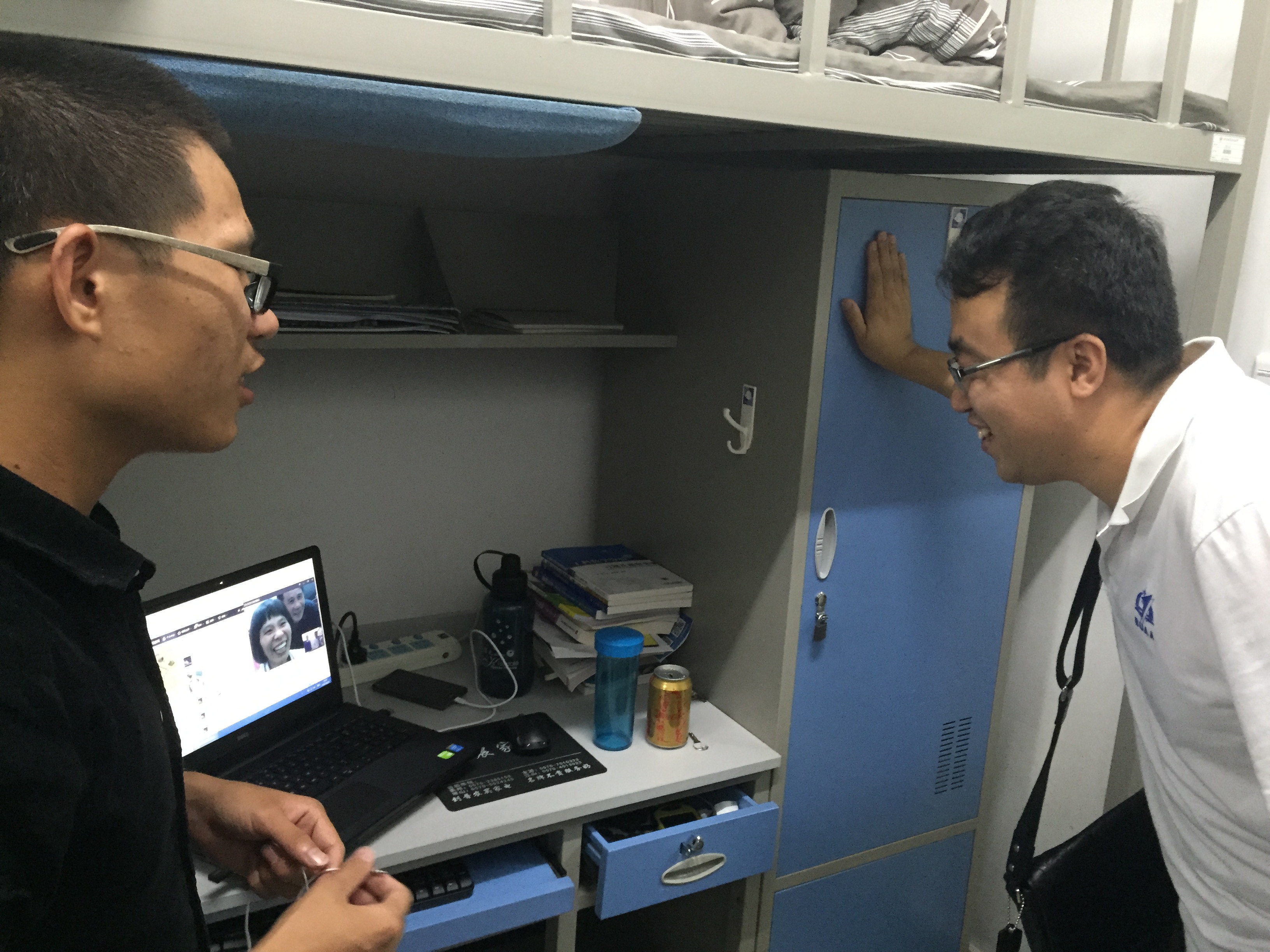学院党委副书记李建伟老师、分团委书记方志老师等一行来到学生宿舍,在宿舍内与2015级新生亲切交谈,仔细询问同学们目前的生活状态,是否适应大学生活,在生活上和学习上是否遇到困难,衣服床铺是否暖和,是否拿到学院发放的月饼和饮料等。李建伟老师叮嘱同学们天气转冷多加衣服、添厚被,也提醒同学们要经常主动给家里打电话问候交流,让父母放心。当看到有同学在和父母视频聊天时,李建伟老师和学生家长进行了交谈,简要交流了学生情况,请家长放心,同时代表学院对家长致以节日问候。