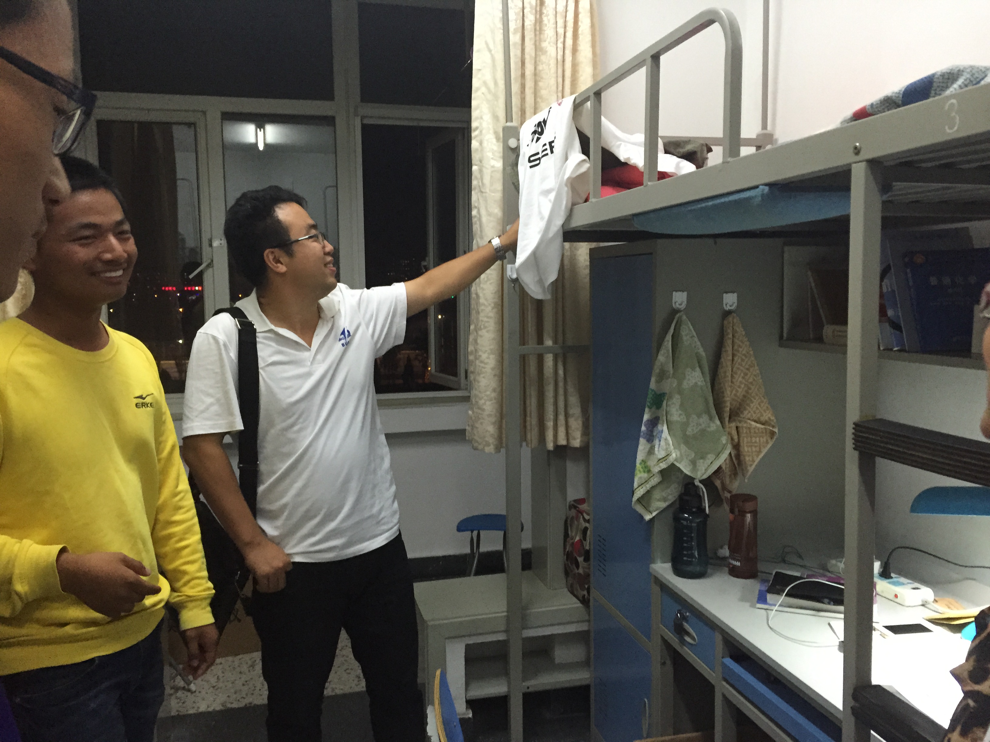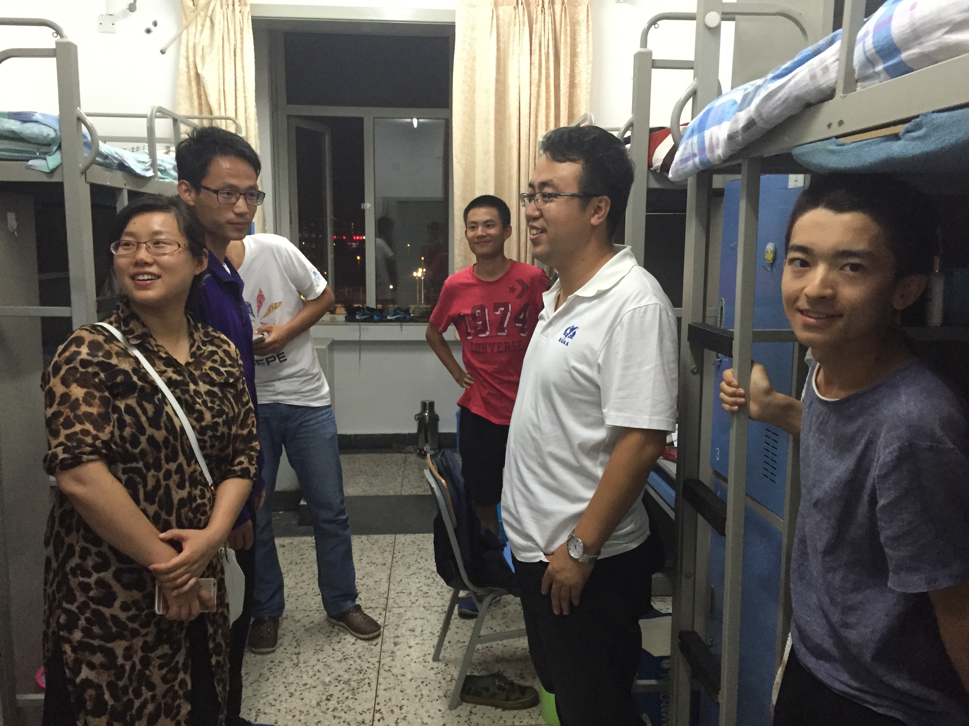 926日晚,动力学院党委副书记李建伟老师、分团委书记方志老师代表动力学院丁水汀院长、王强书记到沙河校区走访宿舍看望2015级新生,并发放中秋慰问品。