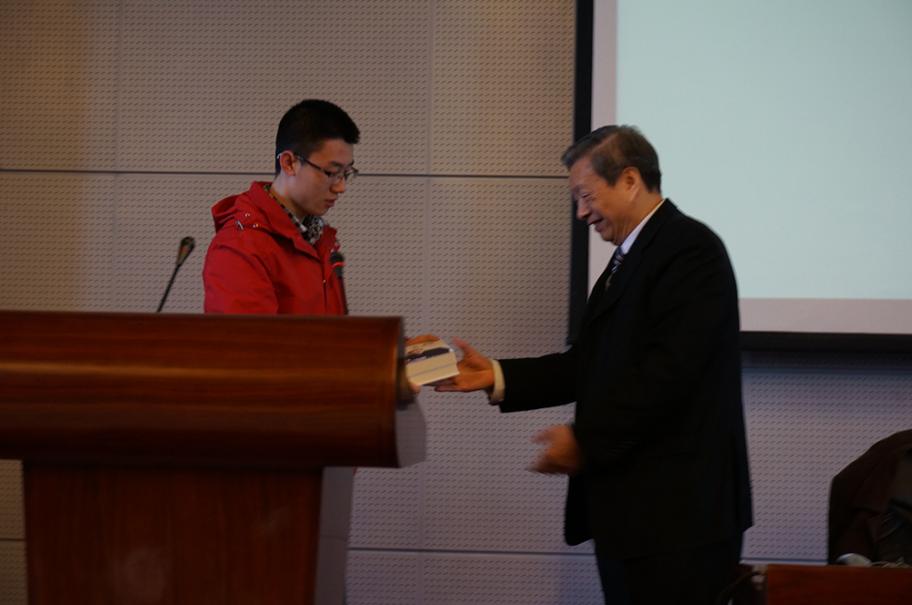 报告开始前,刘大响院士首先向2014级吴大观班的同学们赠送了他的书籍,激励他们努力学习,日后为中国航空发动机事业作出自己的贡献。随后,刘大响院士从我国航空发动机的发展现状及趋势,研制重点和难点,主要成就及问题,发展机遇和挑战以及对同学们的希望等五个方面讲述了本次报告。