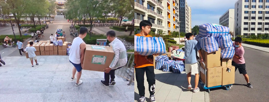学校学院给同学们提供周到的搬家服务,以宿舍为单位发放纸箱、编织袋、胶带、马克笔、信息标签等搬迁物资,在学校物资的基础上额外订购了纸箱、编织袋等,为学生们宿舍搬迁保驾护航。