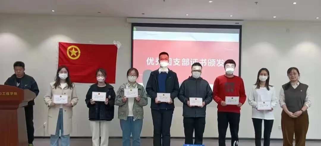 李天韵为优秀团支部颁发证书并合影留念。