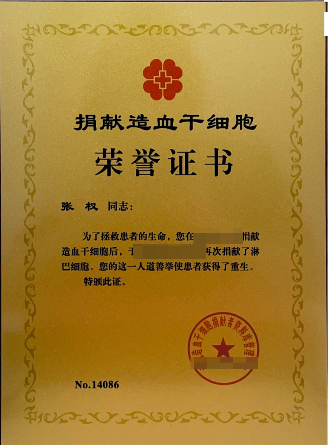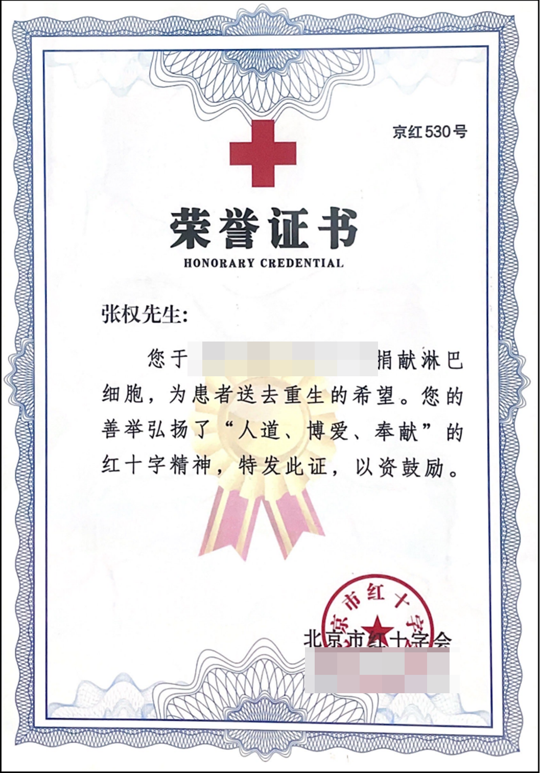 张权捐献造血干细胞,成为北京市第478例捐献者、北航4年来第5例捐献者。