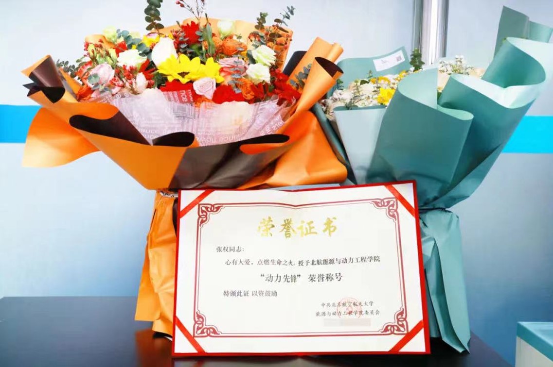 我院博士生张权日前通过初评、答辩环节,获得“北航榜样——大学生年度人物”“见义勇为之星”荣誉(全校1人)。