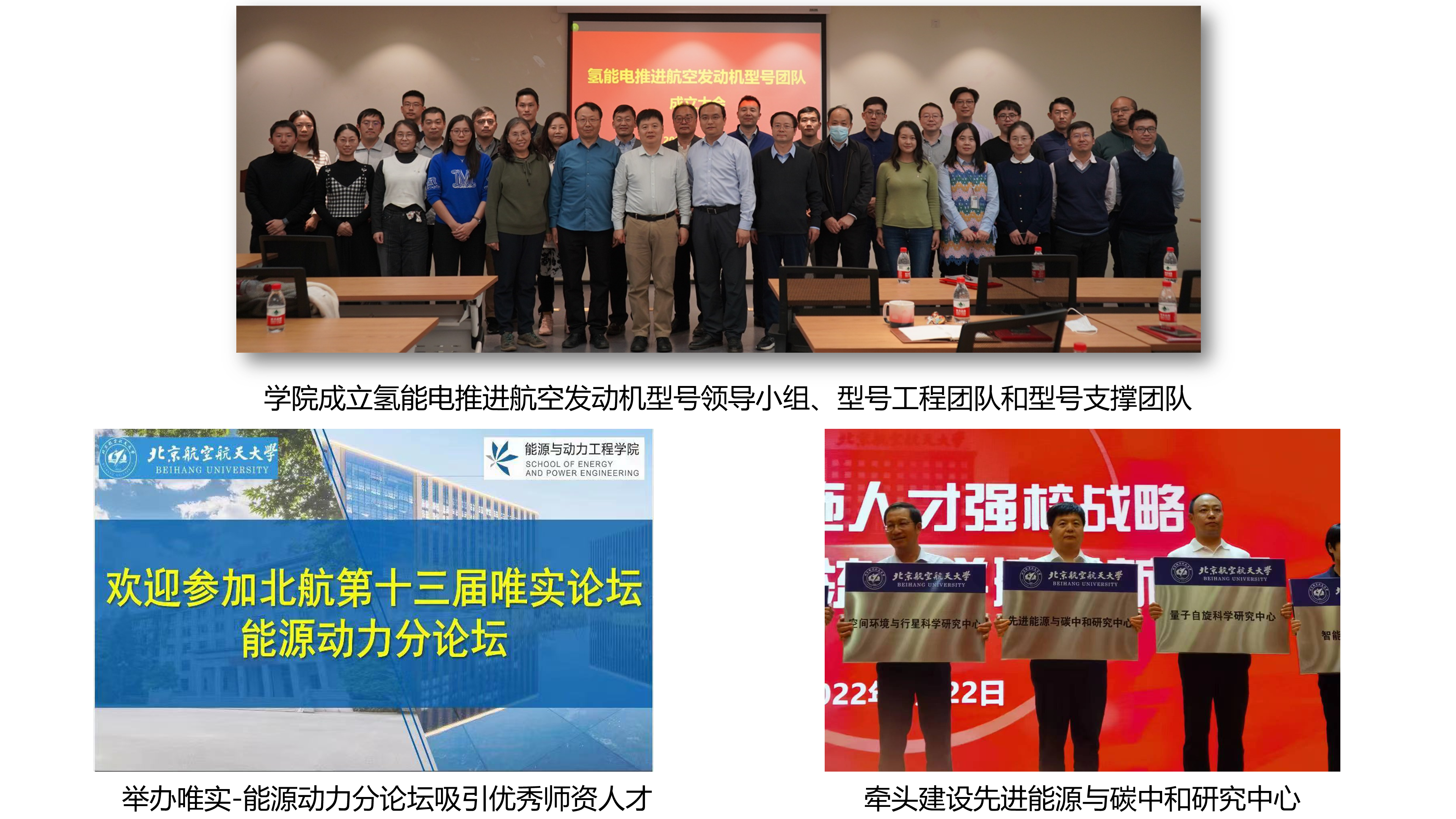我院动力工程及工程热物理一级学科在全院师生的共同努力下,学科实力显著提升,实现了既定的规划目标。学院在此基础上再接再厉,面向“双碳”等国家重大战略,谋划学科发展新方向,打造体系化、有组织的科研“四大模式”升级版。学院聚焦以智能电推进为代表的未来空天动力,瞄准绿色、高效航空氢能技术,成立了氢能电推进航空发动机型号团队和支撑团队,并申报获得了国家级科研及预研项目的支持,力争实现原创性突破,支撑航空“双碳”目标的实现。参与学校先进能源与碳中和研究中心建设。申报设立空天智能电推进二级学科。
