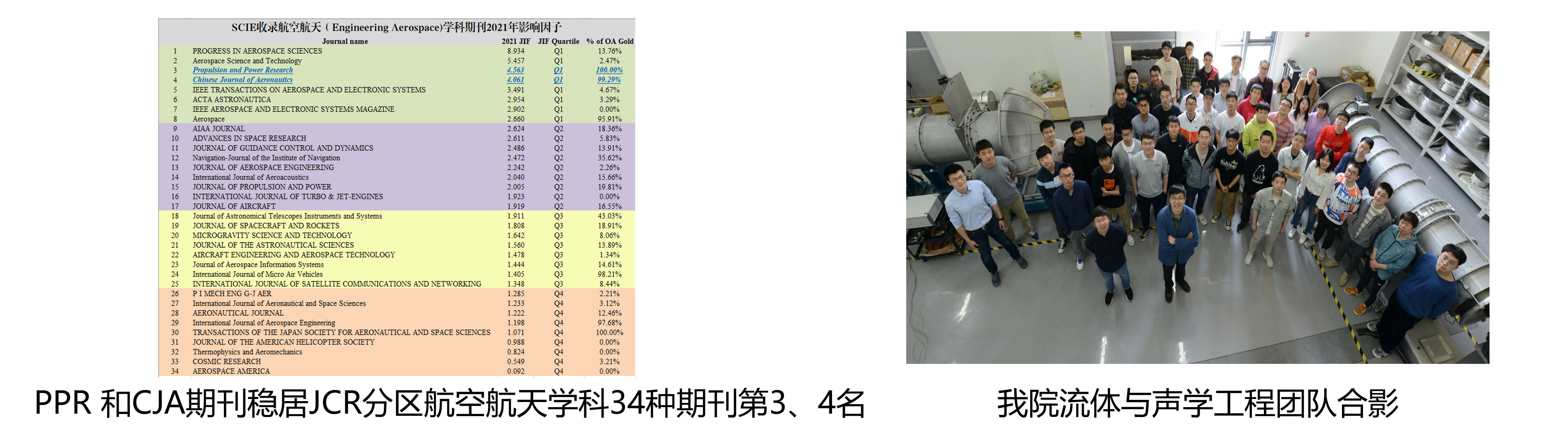 学院在保持航空动力相关学科国内优势地位的基础上,一方面持续聚焦重大领域攻关力度,在研某重大专项、民机专项24项,年度经费到账2.1亿,发表SCI检索论文223篇,申请专利125项;另一方面,积极在新能源领域提前布局,与国家能源集团共同申报“先进风电装备与智慧风电系统全国重点实验室”,并筹建“先进双碳技术创新中心”,重点在风电和太阳能、可再生能源制氢、氢能动力装置研制及运维、氢能储存运输、储能系统设计和安全运行等开展合作。2022年学院获省部级奖励4项,包括中国航空学会技术发明、中国内燃机学会技术发明、中国颗粒学会颗粒测试奖一等奖3项,国防技术发明二等奖1项。主办期刊《Propulsion and Power Research》、《Chinese Journal of Aeronautics》稳居JCR分区航空航天学科34种期刊第3、4名。