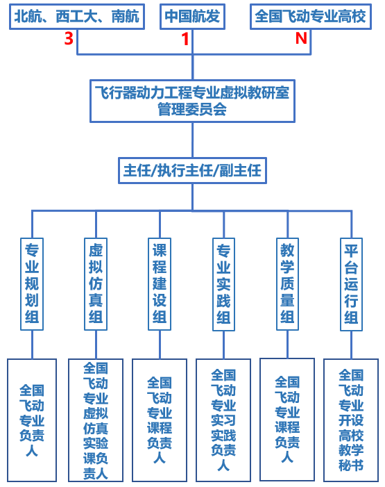 虚拟教研室是“智能+”新时代基层教学组织建设的重要探索,在“学校主导、学院主体、基层教学组织主责”的人才培养工作体系中发挥重要作用。飞行器动力工程专业虚拟教研室自2022年3月正式获批以来,初步构建了“3+1+N”协同育人运行机制,形成了“管委会+行政主任+6个工作组”的组织框架。