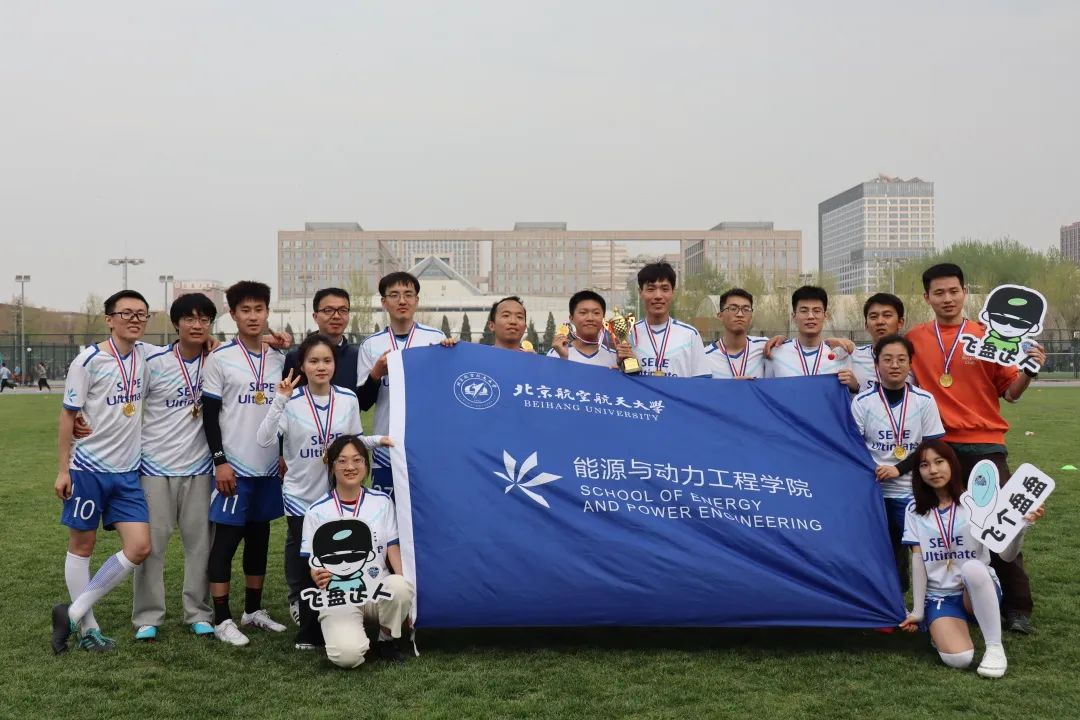 2023年4月1日中午14:50,北京航空航天大学首届飞盘联赛两校区总决赛在北航学院路校区操场顺利举办,动力学院飞盘队以15:3的大比分战胜2系,夺得首届飞盘联赛两校区总冠军!