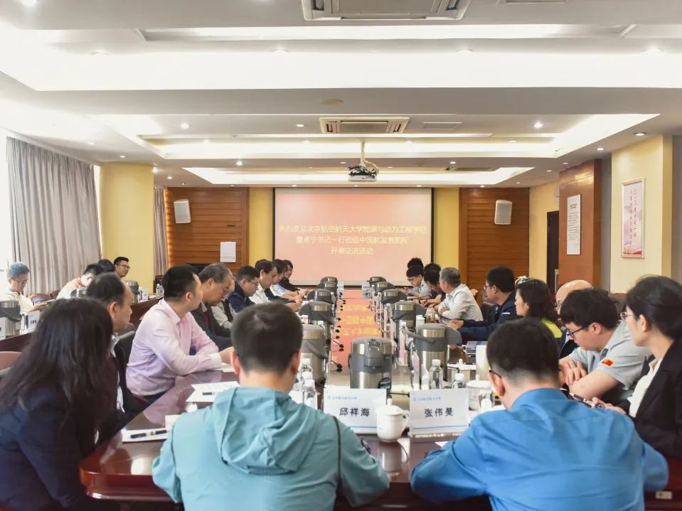 下午,师生一行来到中国航发贵州黎阳航空动力有限公司。黎阳公司党委副书记张志国、项目经理黄金、人力资源部部长潘绍锋、技术中心主任汪祥、人力资源部副部长赵广俊、团委书记尹先波等参与了交流活动。师生首先参观了公司展馆和生产车间,深入了解了企业的生产流程、技术特点以及科研需求。随后,潘绍锋部长和孙大坤副院长分别介绍黎阳公司和动力学院情况,双方围绕实习实践基地建设、校企俱乐部建设、科学研究合作等展开座谈交流。