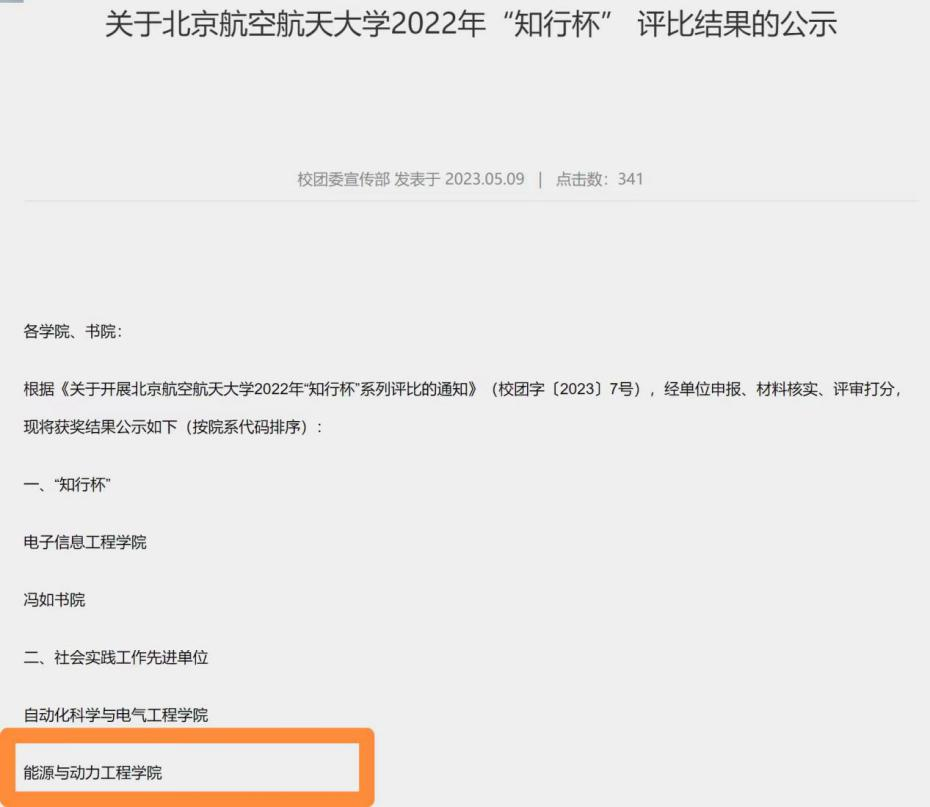2022年“知行杯”评比已经落下帷幕,在本次“知行杯”评比中,能源与动力工程学院斩获佳绩,荣获“社会实践工作先进单位”荣誉称号。