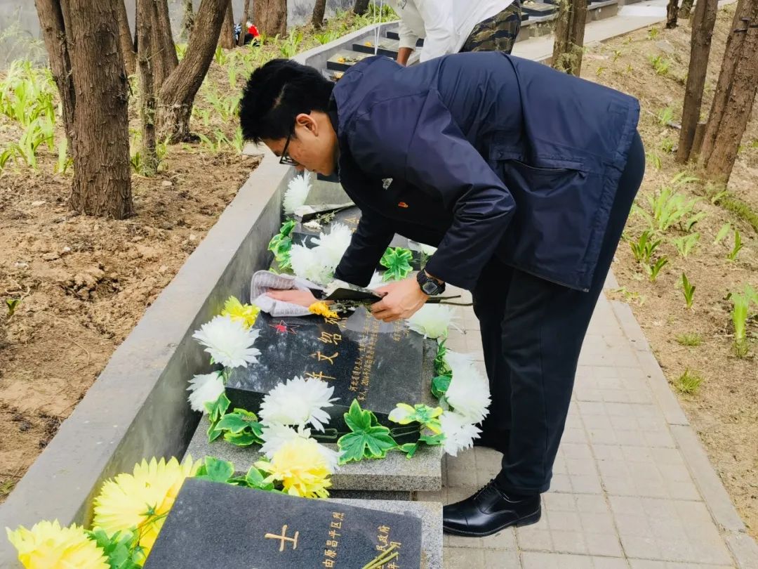 同志们深情地为革命先烈拭去浮尘,这不仅仅是用手中的布巾轻轻擦拭,更是用心灵的感慨呈上敬意,来为他们整理和铭记。献上的鲜花,不仅仅是鲜艳的花朵,更是对先烈英勇牺牲的崇高敬意和深深的缅怀。昔日,他们把青春融进祖国的山河里,如今,同志们用行动礼赞不朽的丰碑。