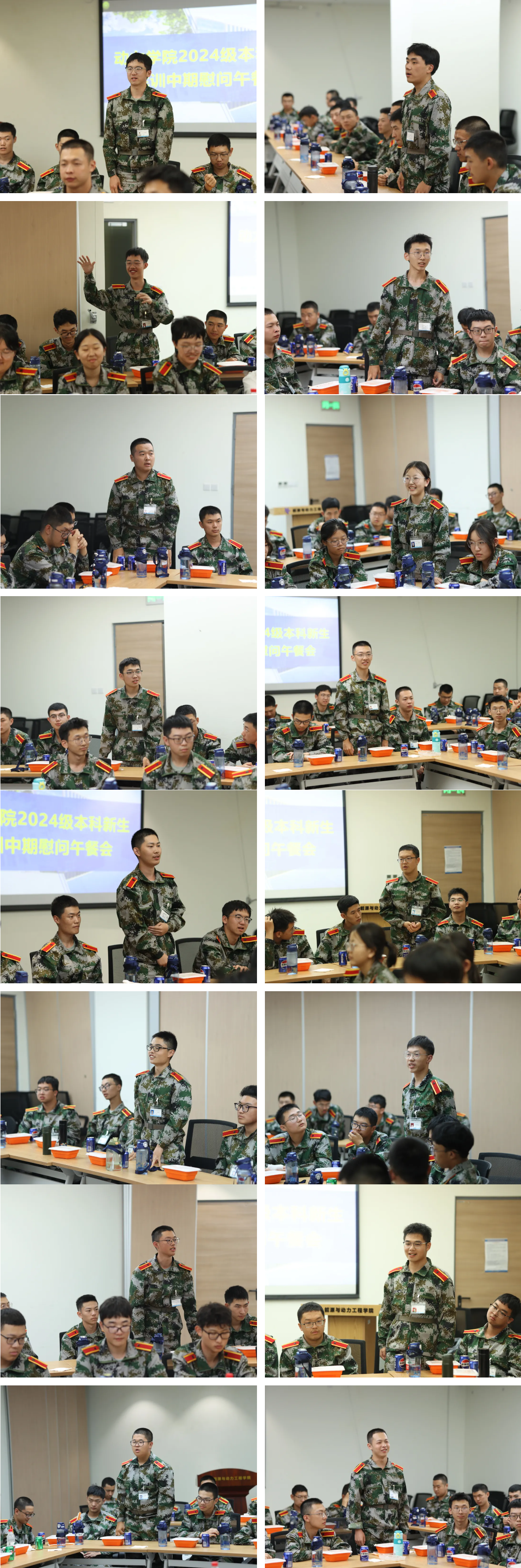 9月2日中午,能源与动力工程学院2024级本科新生军训中期慰问午餐会在沙河校区主楼F703举行。学院院长闫晓军,党委书记董卓宁,党委副书记谷萌,2024级本科生班主任李育隆、杨慧,专职辅导员张大伟,2024级新生辅导员范永升、张智,以及学院2024级本科新生参加活动。
