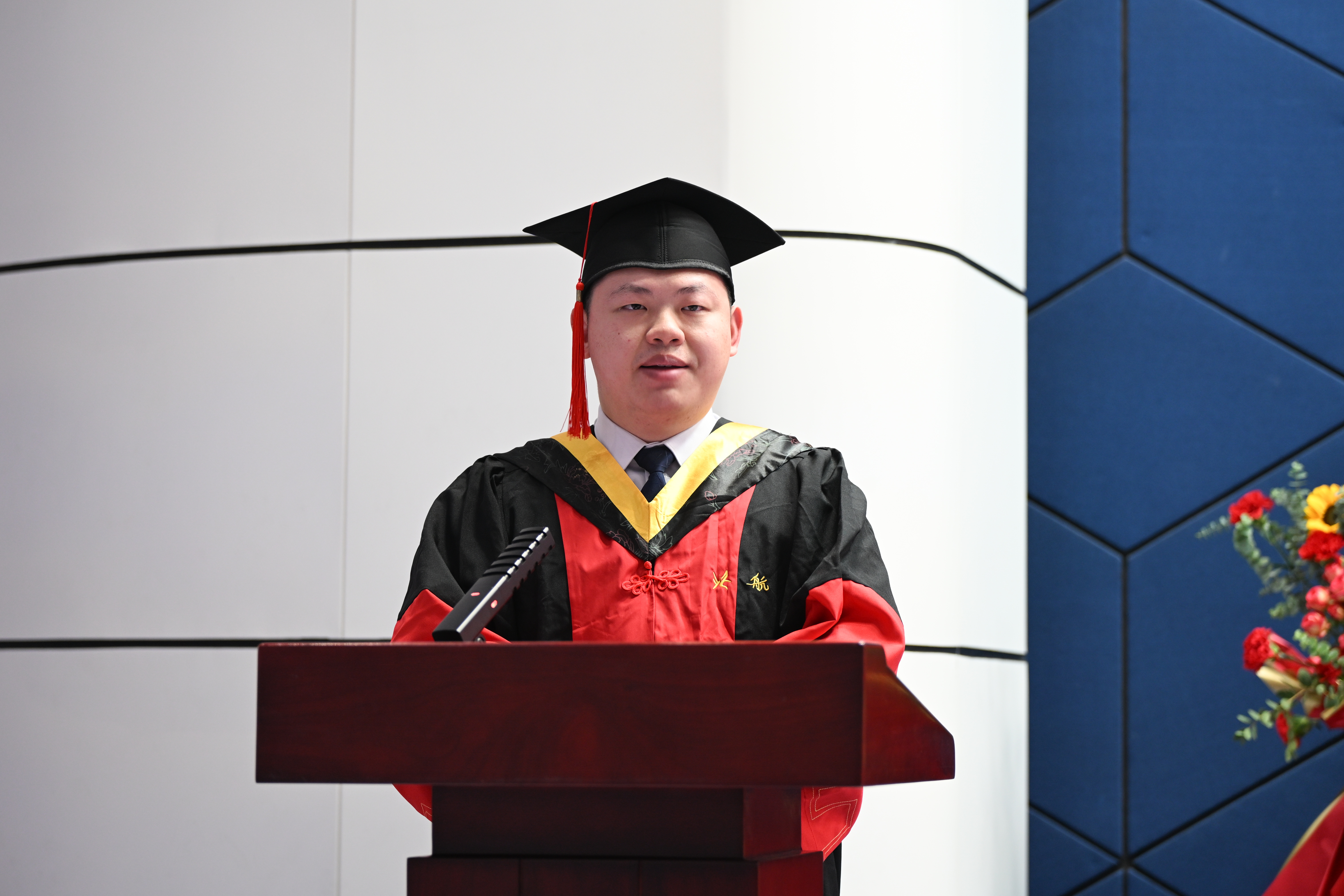 毕业生代表胡誉同学,回顾了在能源与动力工程学院的求学历程,“坚忍不拔”、“脚踏实地”的科研精神、“恪尽职守”、“求真务实”的服务态度、“逐梦空天”、“航空报国”的人生理想已经成为了他作为北航动力人的标签,也将鼓励其肩负航空报国的使命,以满腔的热情和坚定的信念,为实现中华民族的伟大复兴贡献自己的力量。