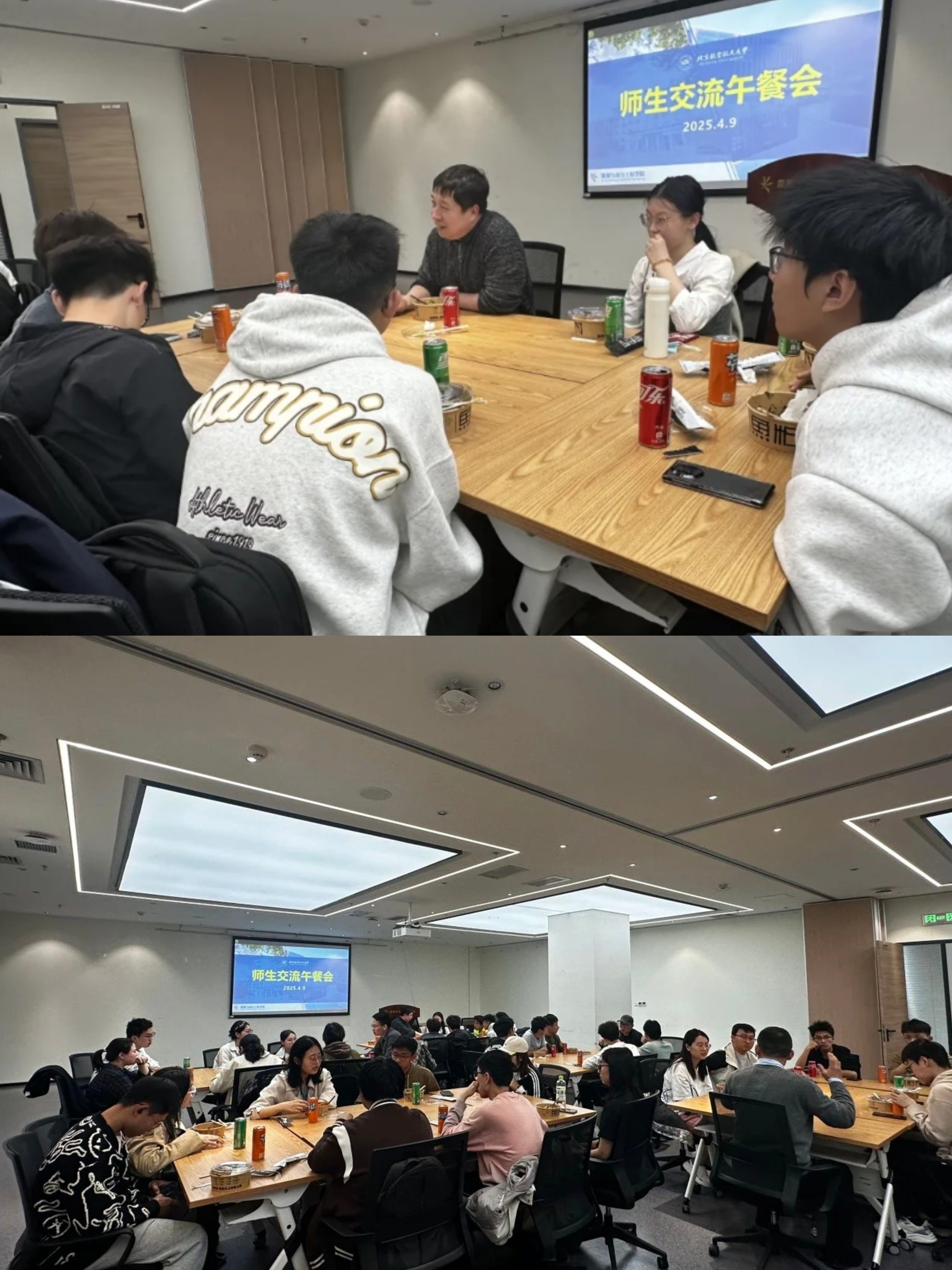 午餐会上,老师向同学们介绍了学院发展历史、学科专业方向、行业趋势及未来就业前景等,对于同学们提出的关于专业培养方案、科创项目、研究方向等方面的提问进行详细解答。老师们还分享了个人成长经历、科研经历和教学心得,让同学们受益匪浅。现场氛围融洽,师生畅所欲言,同学们在轻松愉快的环境中加深了对学院的了解。