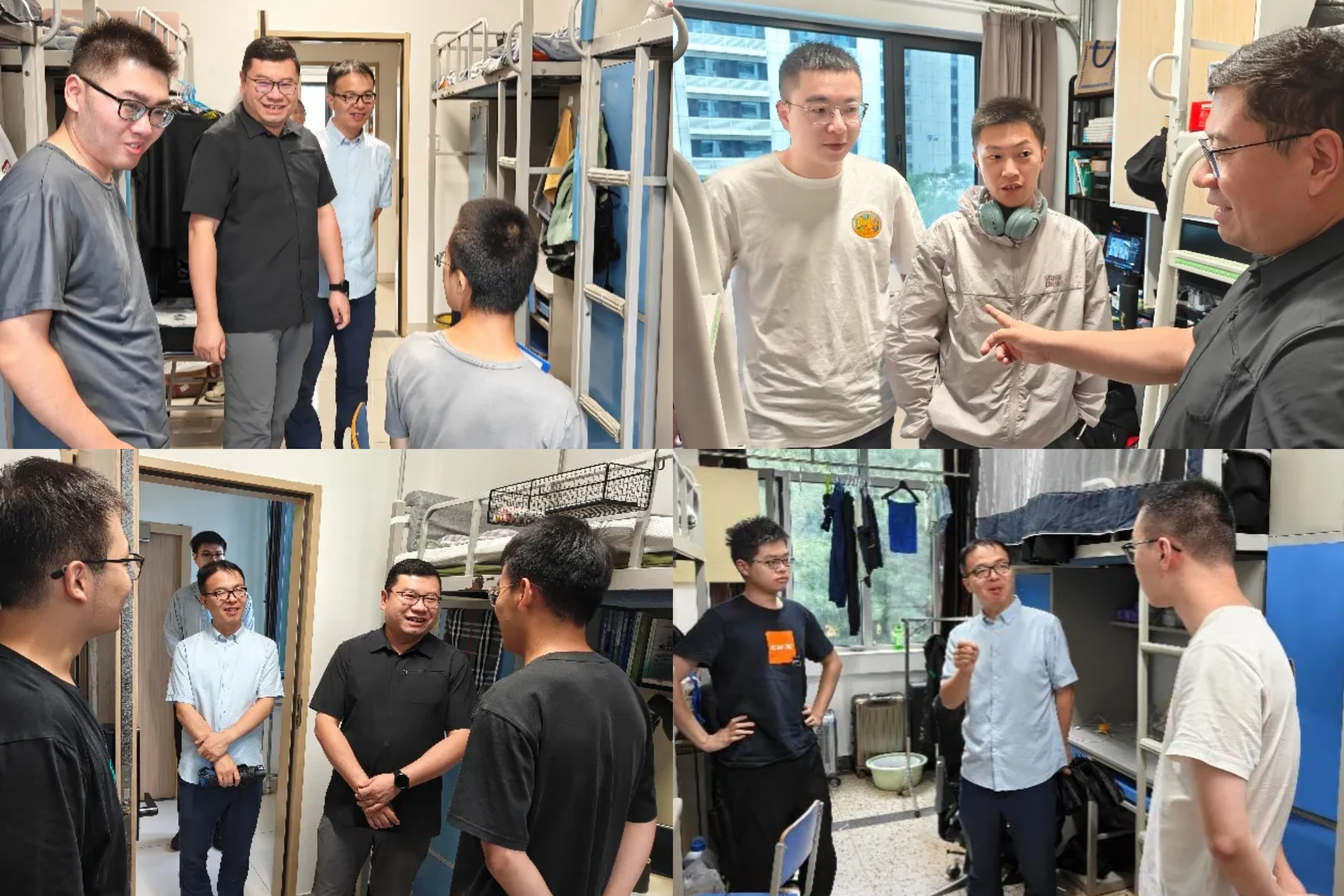 学院老师们走进宿舍与新生亲切交流,详细了解大家的科研方向与生活需求。