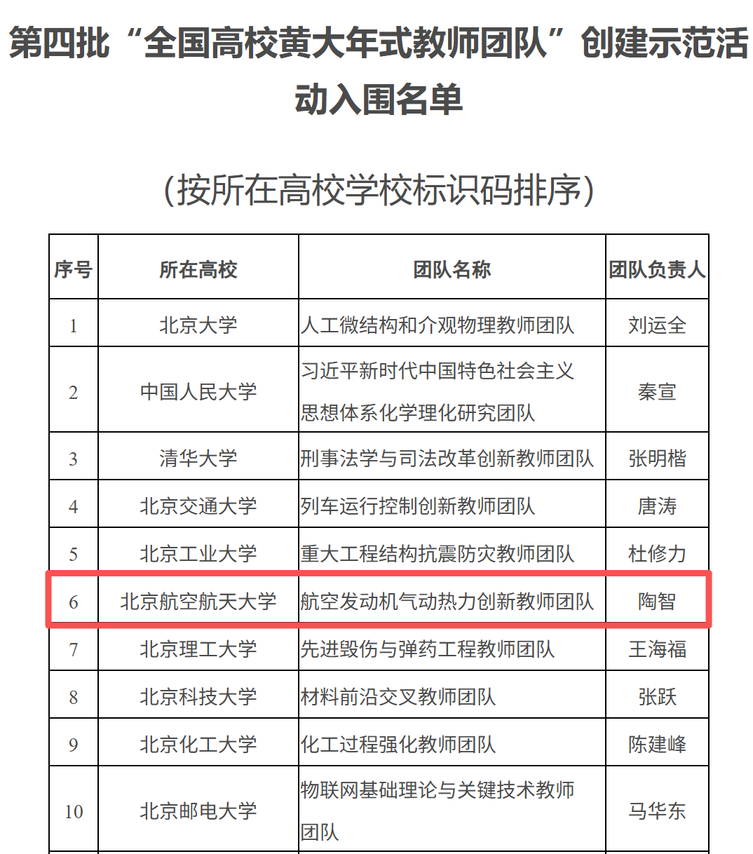 日前,教育部印发通知,公布第四批“全国高校黄大年式教师团队”创建示范活动入围名单,北京航空航天大学陶智院士领衔的航空发动机气动热力创新教师团队入选。
