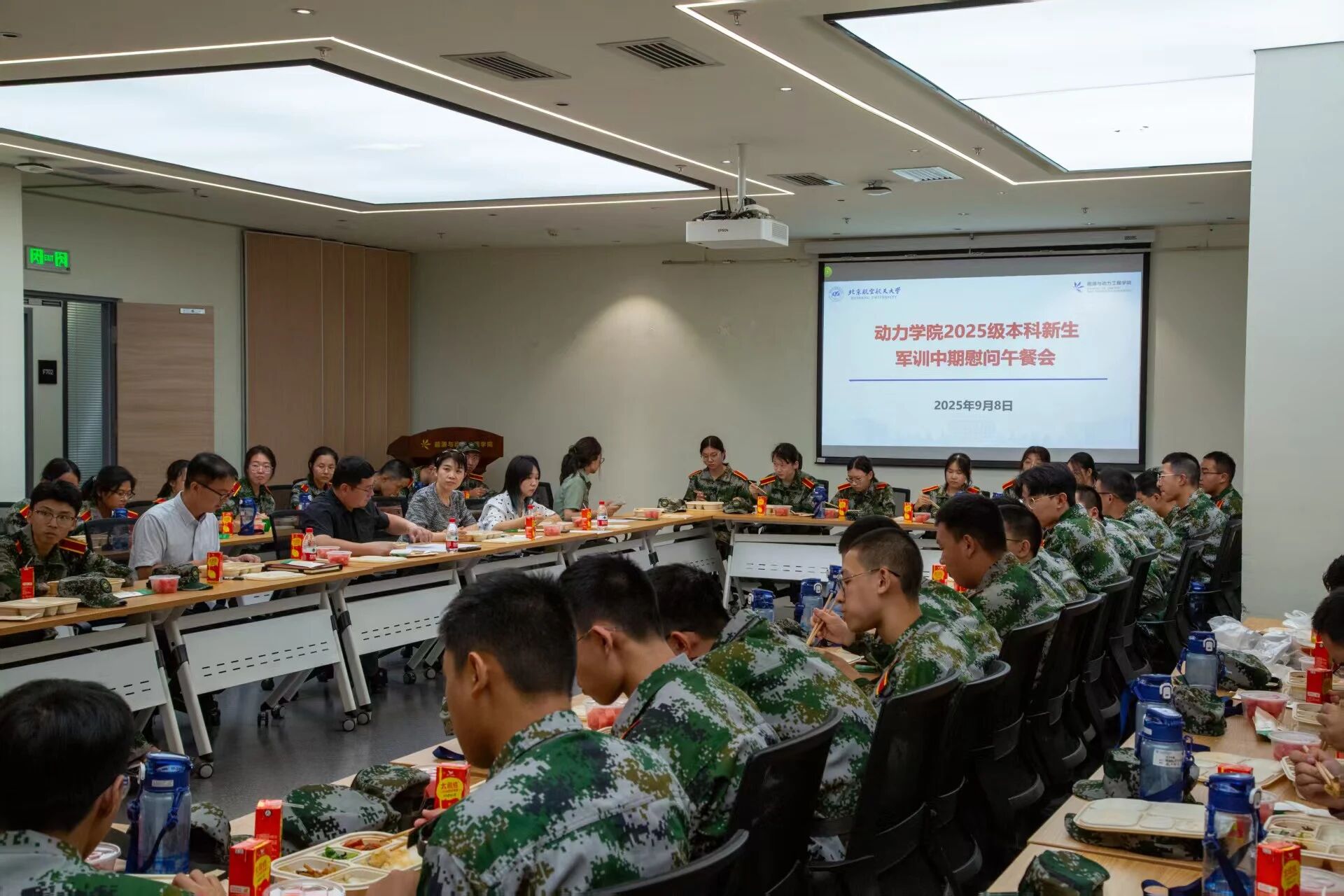 此次午餐会,不仅是一次简单的慰问,更是一场心与心的交流。相信2025级动力学子将带着这份关怀与期许,以更坚定的意志完成军训,在未来的日子里传承自强中国心精神,将个人理想融入空天报国的使命,在北航书写属于自己的精彩篇章!