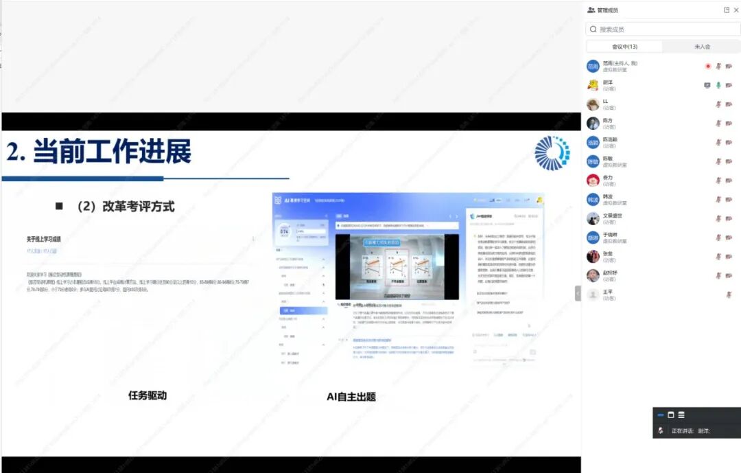 为推进全国航空动力类课程教育教学改革研究项目高质量开展,及时掌握项目进展、优化研究方向,根据虚拟教研室工作安排,2025年 9 月 27 日,“教育部飞行器动力工程专业虚拟教研室”联合“教育部航空发动机原理课程虚拟教研室”通过线上形式,成功举办2025 年度全国航空动力类课程教育教学改革研究项目中期检查评审会议。来自北京航空航天大学、西北工业大学、国防科技大学、空军工程大学等 20 余所高校及科研院所的项目团队参与此次评审。会议对数十个教改项目进行了中期评估,重点聚焦虚实融合、AI技术应用和课程思政创新。