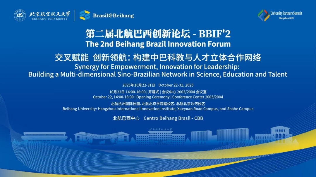 10月22日下午,由北航能源与动力工程学院和北航巴西中心联合举办的重点伙伴国家巴西专题系列活动之一“第二届北航巴西创新论坛(The 2nd Beihang Brazil Innovation Forum - BBIF'2)”成功举办,北航赵巍胜校长致欢迎辞,北航校长助理、国新院院长董卓宁主持会议。巴西科学院院士Julio Romano Meneghini教授带领圣保罗大学代表团参会,这是圣保罗大学对2025年7月北航党委书记赵长禄带队前往巴西访问、2025年8月北航能源与动力工程学院教职工代表团前往巴西对其学术访问的积极回应,是双方科研与教育合作的进一步巩固。