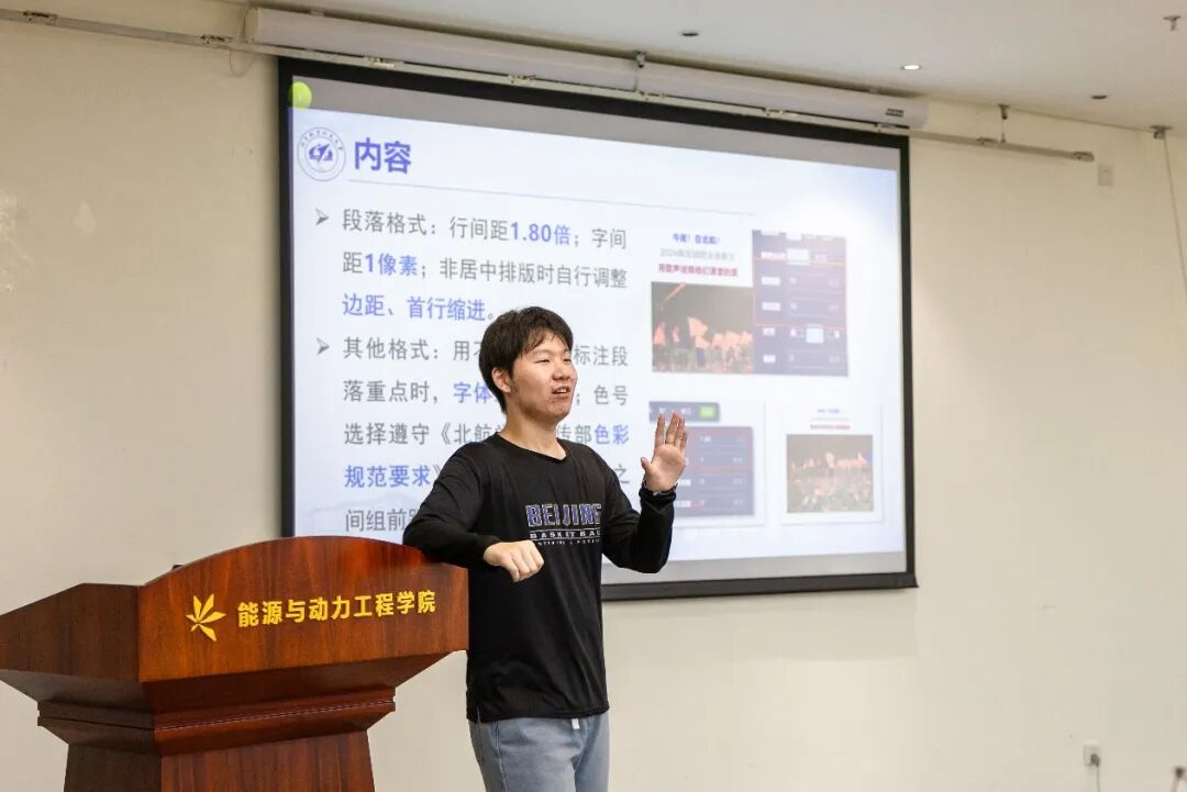 10月31日晚,动力学院航小发工作室在F703-1举办宣传技能专题培训。本次培训特邀学生工作部郑崴鹤与航小萱摄影部龚德艳担任主讲,围绕新闻稿撰写、推送制作与新闻摄影三大板块展开系统讲解。