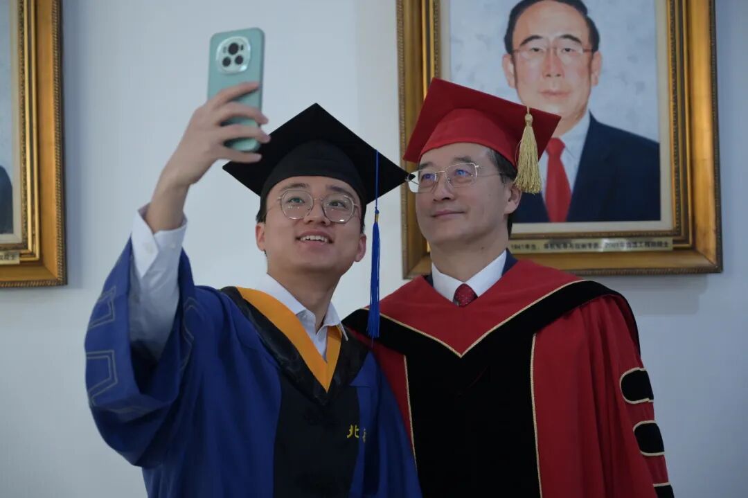 随后,毕业生学位授予仪式正式开始。与会领导和嘉宾为毕业生拨穗正冠,送上最为真挚的祝福并合影留念。