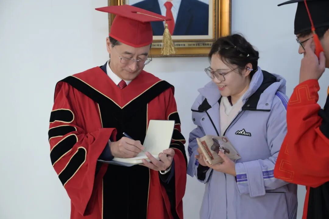 为了让1月份毕业的同学们不留遗憾,校长王云鹏院士专程来到典礼现场,既为同学们送行,也给予同学们勉励。校长向全体毕业生深情寄语,提出了三点希望:“科学没有国界,但科学家有祖国”,希望同学们始终心系国家,在科研中瞄准国家亟需,在岗位上坚守强国使命;“真理无尽,探索不息”,希望同学们保持求知若渴的态度,敢于挑战权威,勇于开拓未知,努力成为技术创新和社会进步的引领者;“天赋可以赢得比赛,但团队合作才能赢得冠军”,希望同学们继承北航优良传统,在强劲“中国心”的光荣使命中,汇聚众力,合举万钧,征服事业高峰。他祝愿大家前程似锦,捷报频传,欢迎常回家看看。
