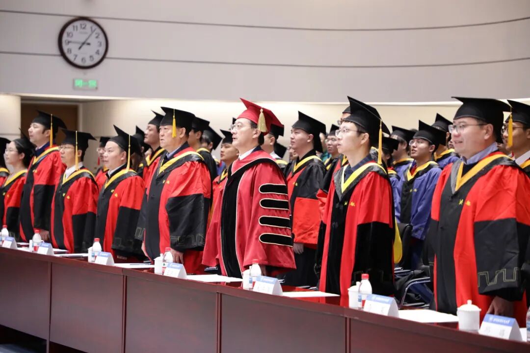 毕业典礼最后全体师生起立,合唱校歌《仰望星空》,悠扬的歌声中洋溢着青春的热忱与不舍,流露着对未来的期盼与壮志。