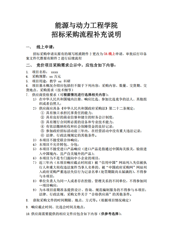 能源与动力工程学院招标采购流程补充说明