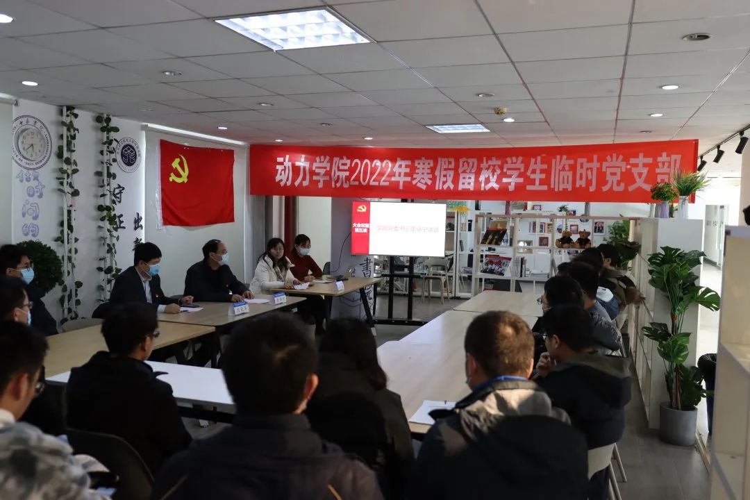动力学院2022年寒假留校学生临时党支部成立大会在沙河校区4号学生公寓一层活动空间举行。学院党委书记董卓宁、院长闫晓军、学院党委副书记方志及学院全体寒假留校学生党员参加会议。会议由方志主持。方志宣读《中共北京航空航天大学能源与动力工程学院委员会关于成立2022年寒假留校学生临时党支部的决定》。党支部委员轮流发言表态,党支部书记张哲介绍支部工作计划。