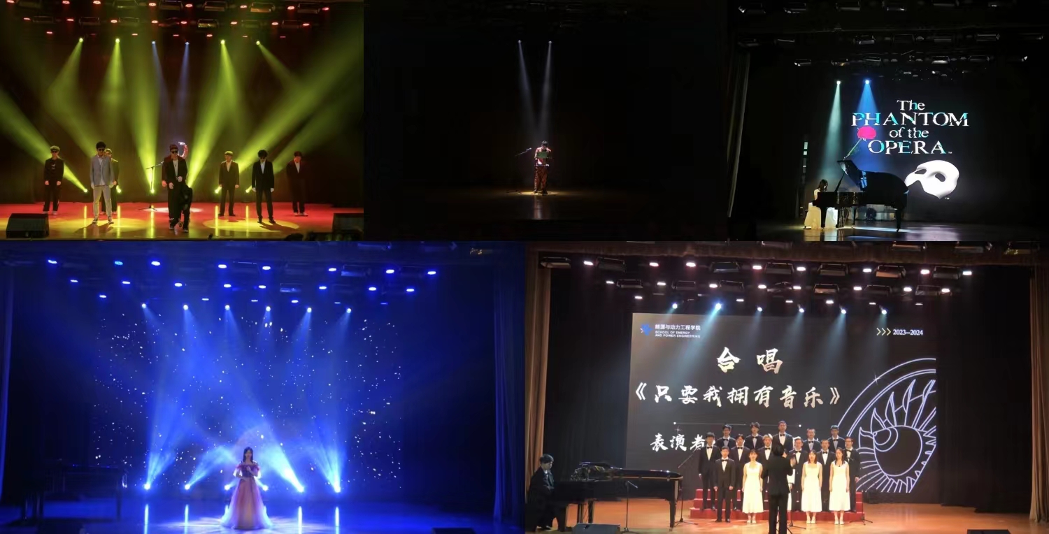 “能动的动力人”组合带来舞蹈《四系不大,创造神话》,展现了动力青年矢志航发事业的精气神;王若寒同学的钢琴独奏《歌剧魅影》为全场带来一场音乐奇旅;吕博今同学独唱《永不失联的爱》,表现了爱情里的不舍与难离;学院合唱队带来合唱《只要我拥有音乐》,让观众沉浸在合唱的嘹亮歌声中。
