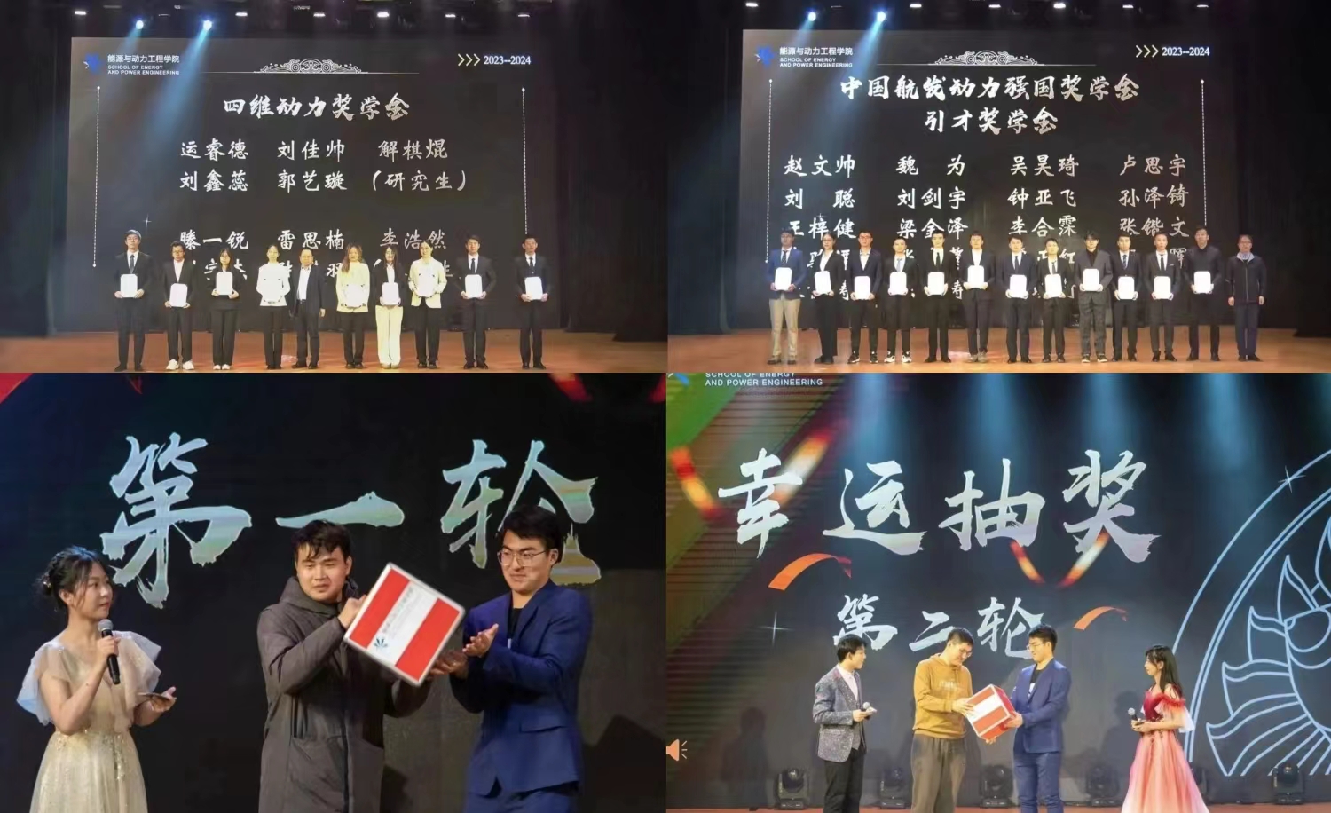 晚会期间进行了颁奖仪式。北京全四维动力科技有限公司常务副总经理李宝清为四维动力奖学金获奖同学颁奖。动力学院党委副书记谷萌为中国航发动力强国奖学金引才奖学金获奖同学颁奖。颁奖仪式后,同学们进行了“金鸡独立”、听歌识曲、抽奖等游戏互动环节。