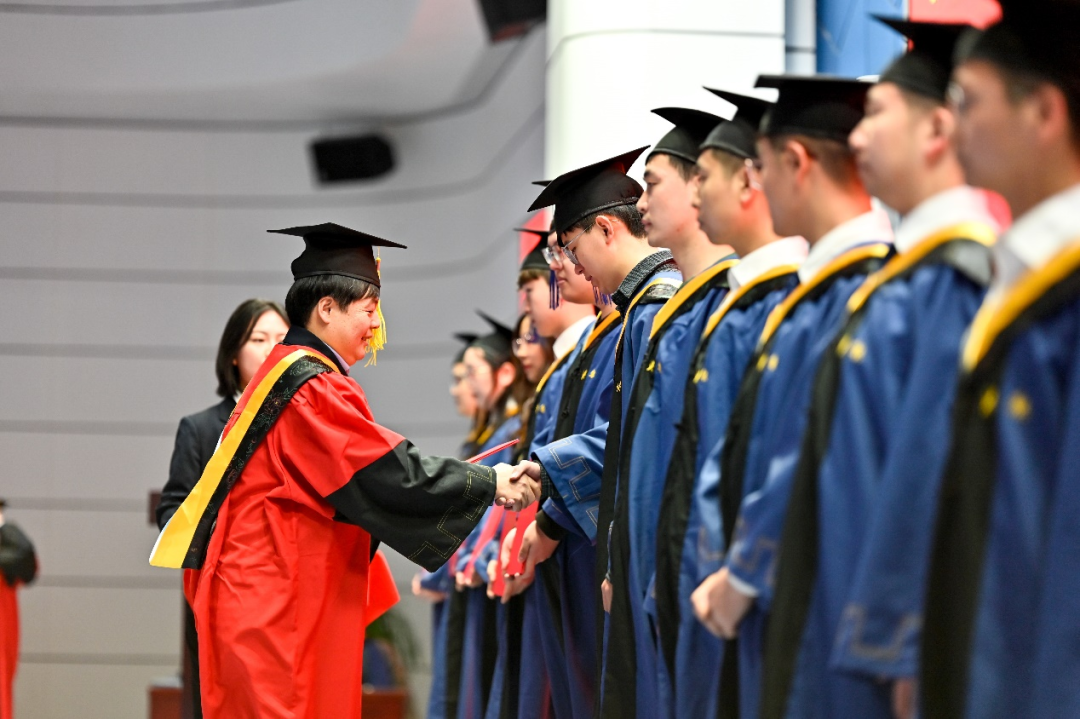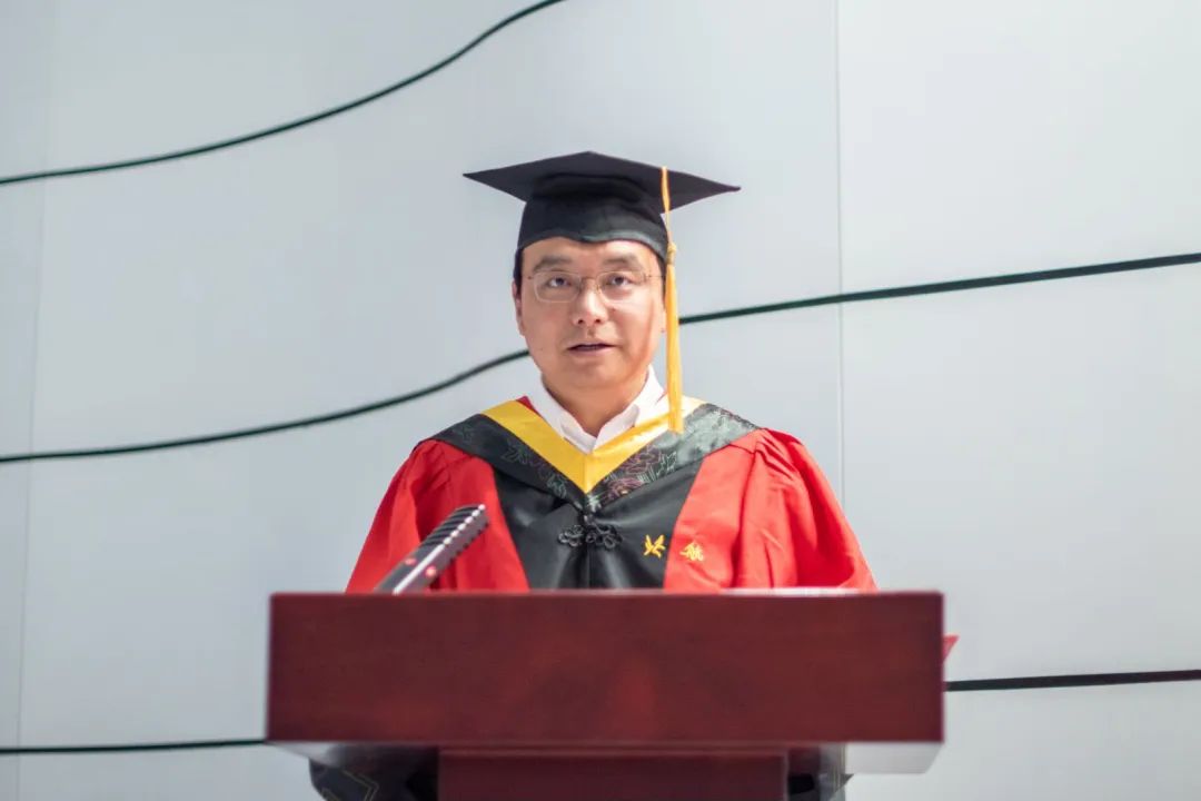 闫晓军院长代表学院向顺利完成学业的硕士及博士毕业生表示热烈祝贺,向辛勤付出的研究生导师和教职员工致以衷心的感谢。他回顾了这几年动力学子与国同行所经历的大事,肯定了同学们勇敢追梦、全面发展。闫晓军提出三点希望与2024届研究生毕业生共勉:第一,爱党报国,勇担时代重任。人生的理想各有不同,但胸怀“国之大者”,服务国之所需,无疑是最为高远的志向。第二,终身学习,锤炼过硬本领。“学如逆水行舟,不进则退”。只有坚持勤奋学习,才能不断进步、持续成长。第三,团结拼搏,凝聚奋进力量。“独行者速,众行者远”。懂团结是人生大格局,能拼搏才能学到真本领。