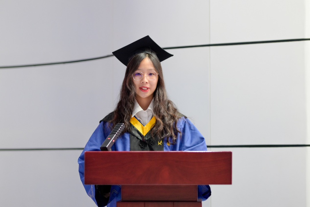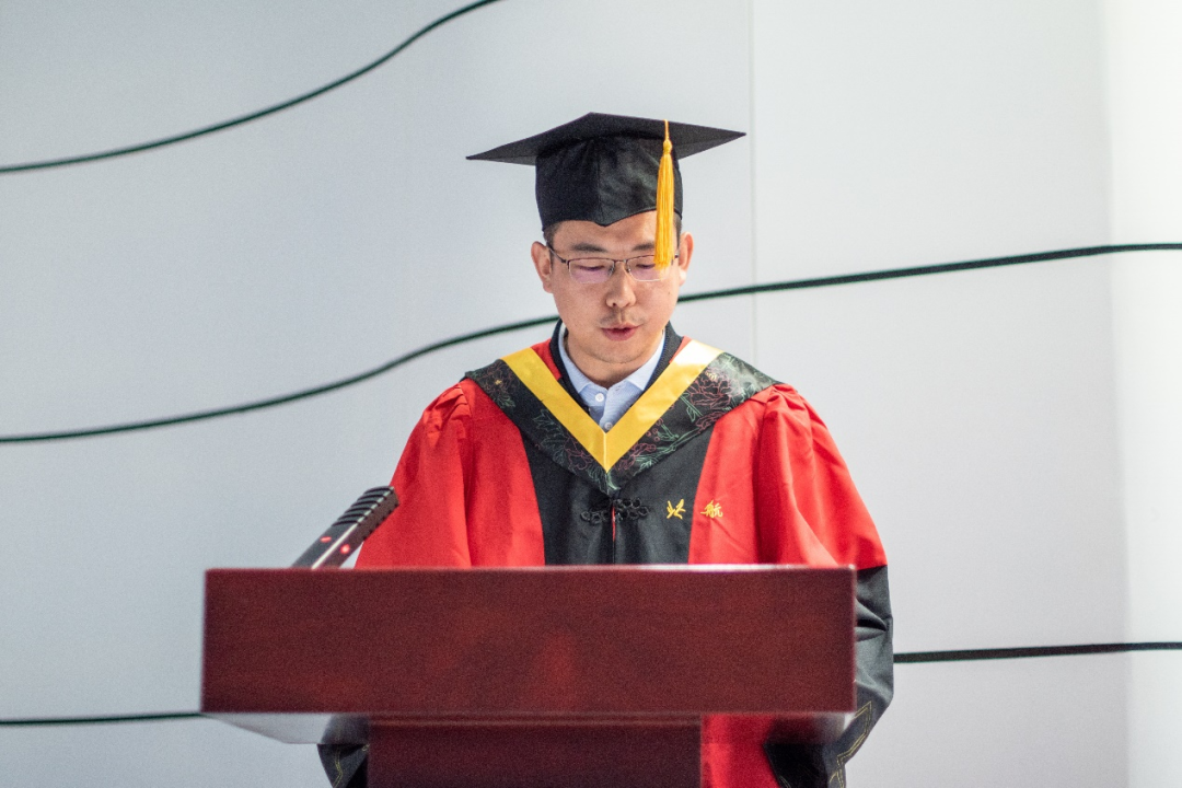 毕业生代表张芊同学,回顾了在能源与动力工程学院的求学历程,讲述了她在仰望星空中融入“大我”成就“小我”,探索“未知”开启“真知”,追寻初心,勇担使命的故事。