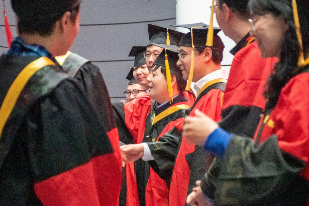 典礼最后,举行了2024届研究生毕业生学位授予仪式,院领导及导师代表为在场的毕业生——拨苏正冠,送上美好祝愿。
